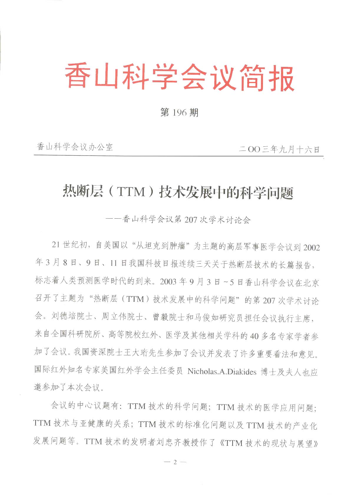 2003年9月香山科學(xué)會(huì)議發(fā)布香山科學(xué)會(huì)議簡(jiǎn)報(bào)(第196期)熱斷層(TTM)技術(shù)發(fā)展中的科學(xué)問(wèn)題