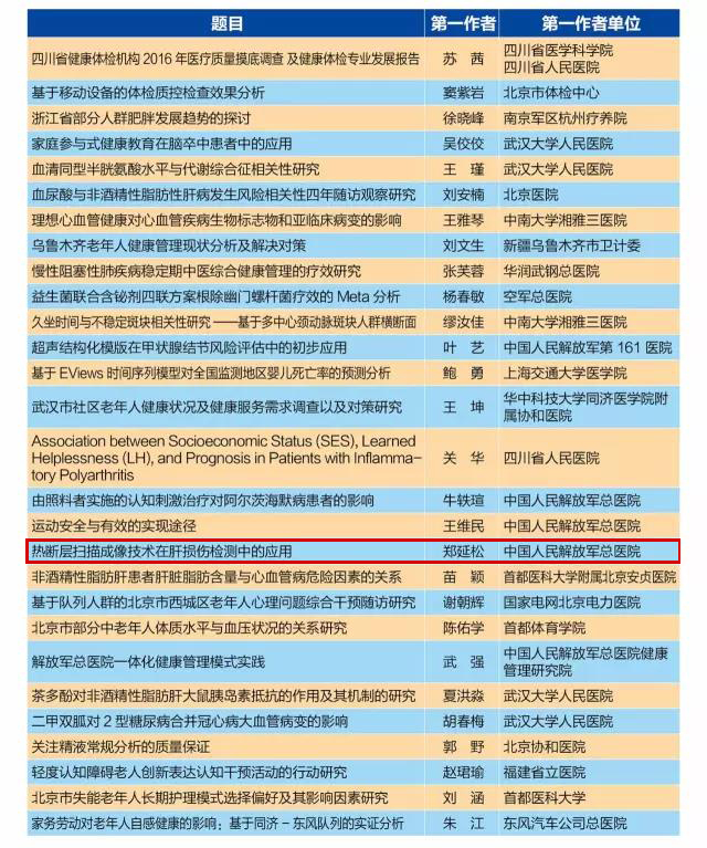 第十一屆中國健康服務業(yè)大會暨中華醫(yī)學會第九次全國健康管理學學術(shù)會議論文評審公示順利結(jié)束,期間共收到投稿3633篇,經(jīng)過15個小組的審稿專家審稿以及8月8日的終審會評審,大會共評選出優(yōu)秀論文28篇,青年優(yōu)秀論文34篇,優(yōu)秀提名145篇。
